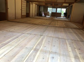 既存畳を撤去後、下板に根太取付、合板を下貼り。