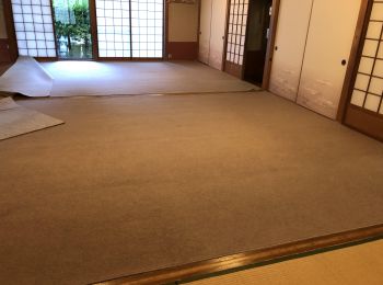 畳の上に敷いてあったカーペットを撤去、畳も撤去しました。