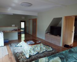 天井には明るく、また天井を高く見せる効果のある白いクロスを、