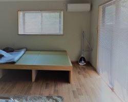 また、色も薄いグリーンを使っており、家具や暖かな木の色とよくマッチしています。