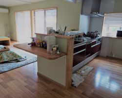 壁には汚れても掃除がしやすい汚れ防止機能付きのクロスを貼りました。