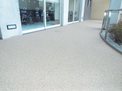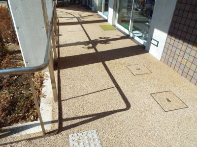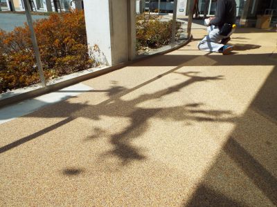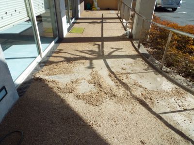 施工前は天然石をウレタン樹脂で接着した「パークコートストーン」が敷設していましたが、