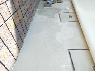 屋外の通路の床の貼替工事を行いました。