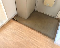 このままタイルカーペットを貼ると段差ができてしまいます。