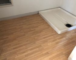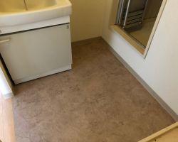 床 既存クッションフロアー撤去のち、新規クッションフロアー貼。
