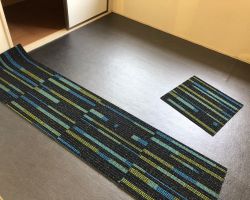 今回施工したインターフェイスタイルカーペットは海外からの輸入品で、デザイン性にも機能性にも優れた材料です。