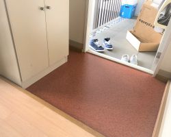 さらにタイルカーペットの下地として厚み8mmのダイウレシートを施工することで、敷居からの段差を解消することができます。