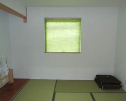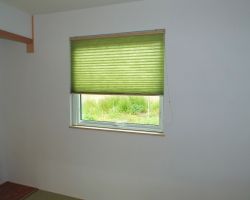 畳の雰囲気によく合う緑の和紙調の生地で、適度に太陽の光が透けるため、